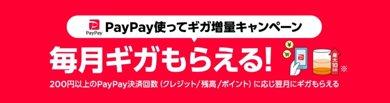 特典 申込日から4カ月後の1カ月間に、PayPay加盟店にてPayPay決済すると、PayPayポイントを最大20%付与 適用条件 「Yahoo!JAPAN ID」でログインしエントリー後、翌月末日までにシンプル3 S/M/Lに申し込んでいることなど 期間 2022年7月1日~終了日未定 「ワイモバイル 新どこでももらえる特典」は、特典ページからエントリーすると、申込月の4カ月後の1カ月のPayPay決済での買い物がお得になるキャンペーンです。