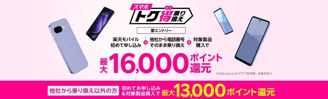 - Androidスマホご購入&Rakuten最強プランご契約でポイントプレゼント