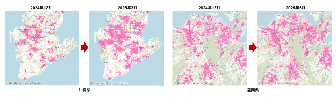 さらに、2025年3月には5G Sub6の基地局においてOpen RAN対応の富士通製無線装置を採用しエリア拡大を加速するといった発表が行われました。2025年7月時点でも九州・沖縄、四国、中国地方における対象地域の5G(Sub6)エリアを最大2.0倍にまで拡大しており、今後もさらなる発展が期待されます。
