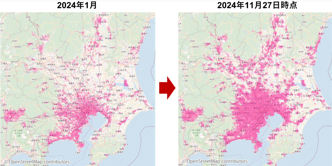 楽天モバイルでは、通信品質向上の取り組みとして2024年内を目途に進めていた関東地方における楽天回線5G(Sub6)エリアの拡大を、2024年1月比で最大1.6倍の予定を超えて2.1倍にまで拡大されました。