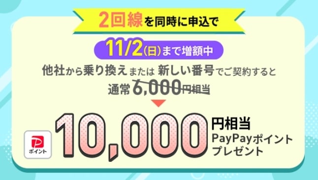 2回線まとめて申し込みでPayPayポイントプレゼントキャンペーン