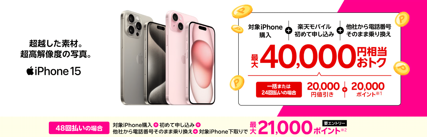適用条件「Rakuten最強プラン」へ他社からの乗り換えと同時に対象製品を購入 など