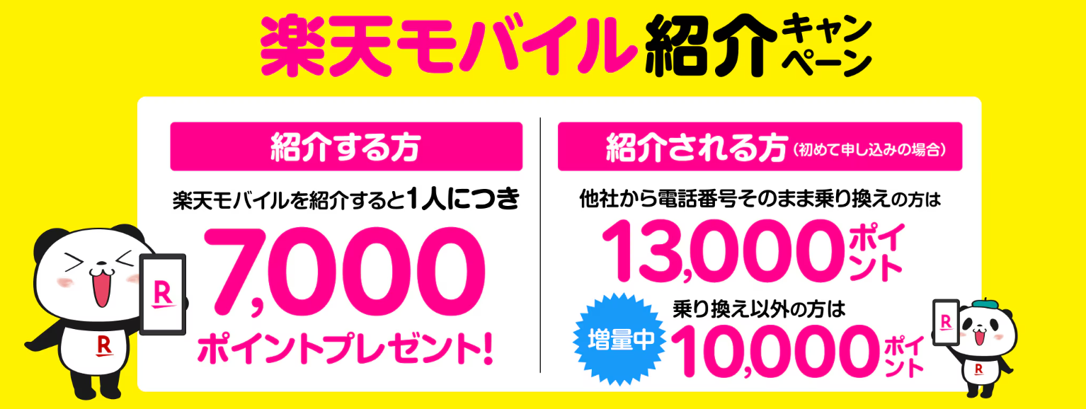 楽天モバイル紹介キャンペーン:1人につき7,000円相当のポイント還元