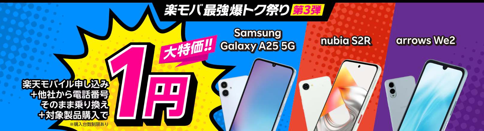 | 適用条件 | Rakuten最強プランまたはRakuten最強U-NEXTへ他社からの乗り換えと同時に対象製品を購入 など |