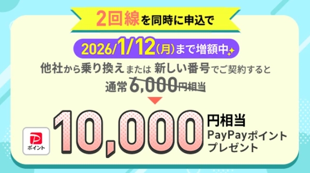2回線まとめて申し込みでPayPayポイントプレゼントキャンペーン