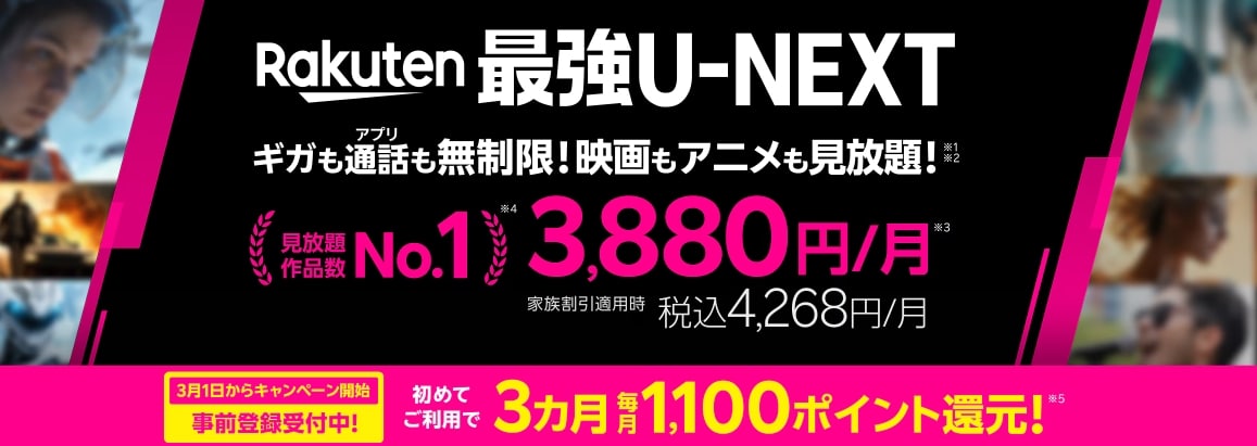 - 【事前登録受付中】Rakuten最強U-NEXTキャンペーン