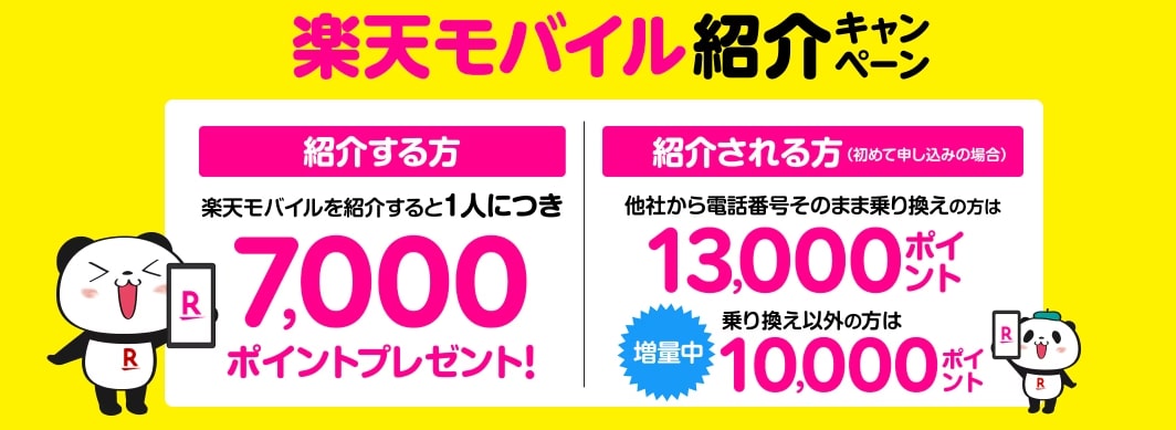 - 楽天モバイル紹介キャンペーン:1人につき7,000円相当のポイント還元