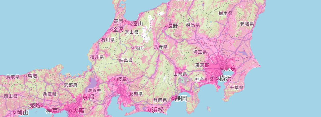 人口カバー率99%を超えているため、都市部などでは利用できるものの山間部などでは使用できない可能性が高いです。