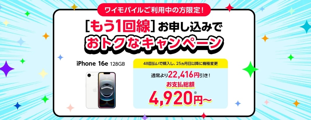 特典 ワイモバイルユーザーがもう1回線新規契約で